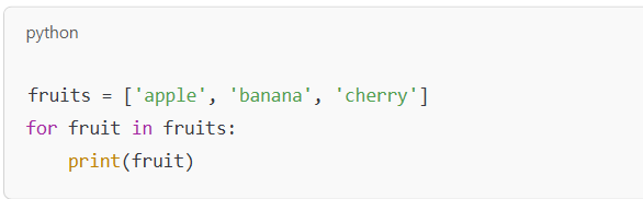 위 코드는 리스트에 담긴 과일을 하나씩 출력하는 코드인데, 어렵지 않죠? 같은 기능을 다른 언어로 구현하면 훨씬 길어질 수도 있습니다.
